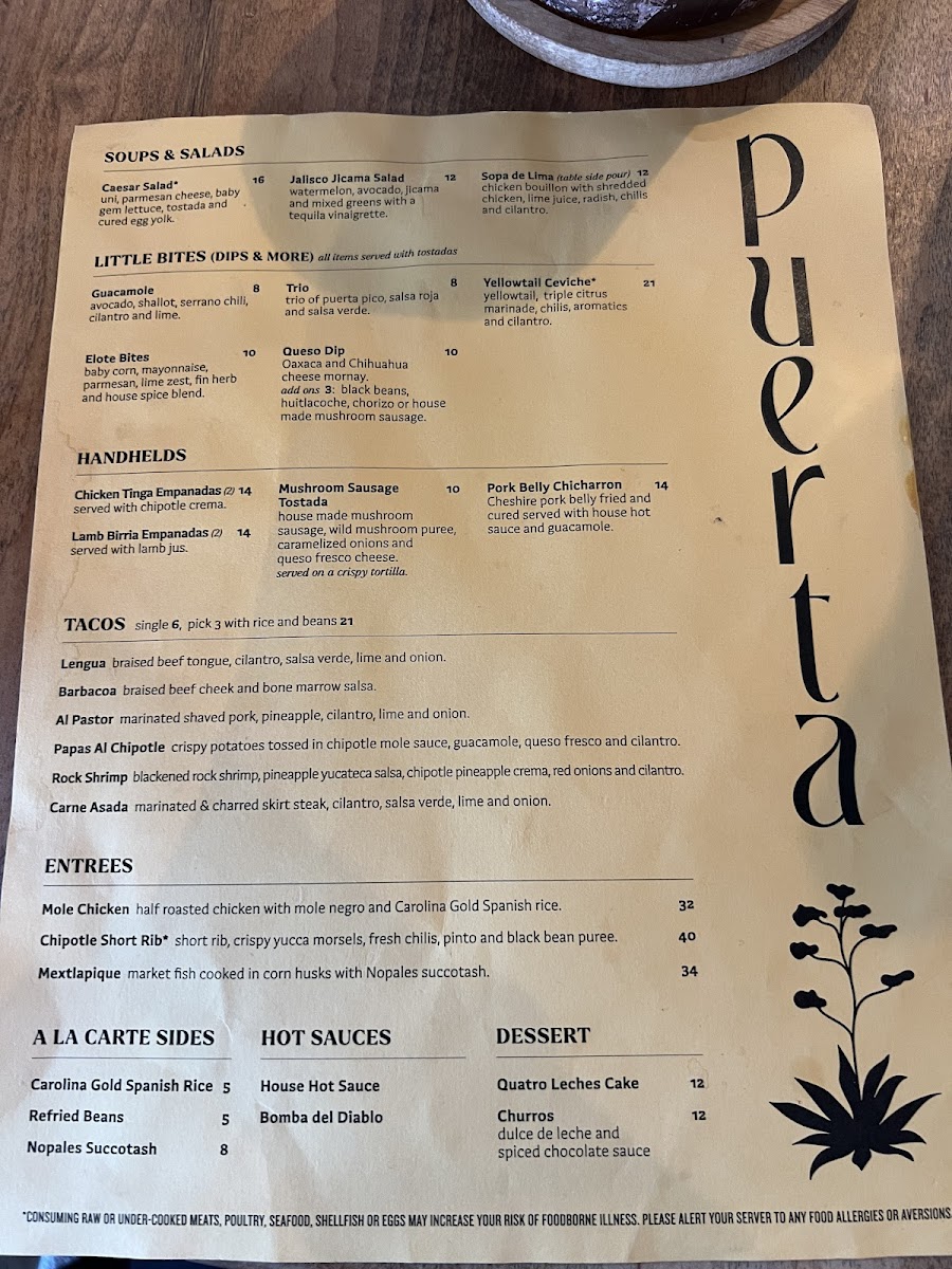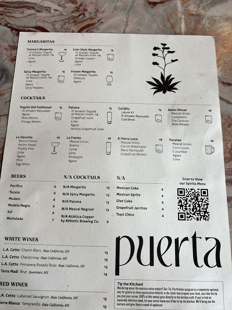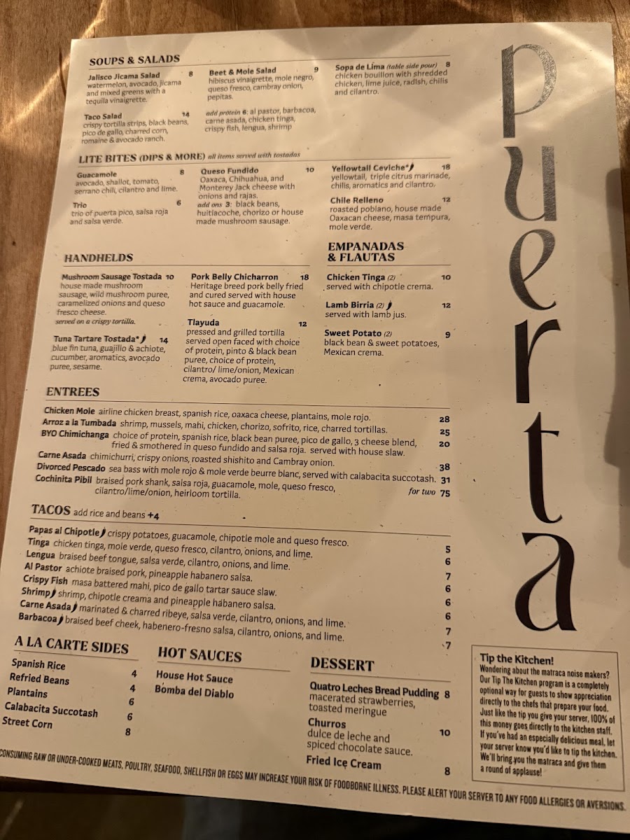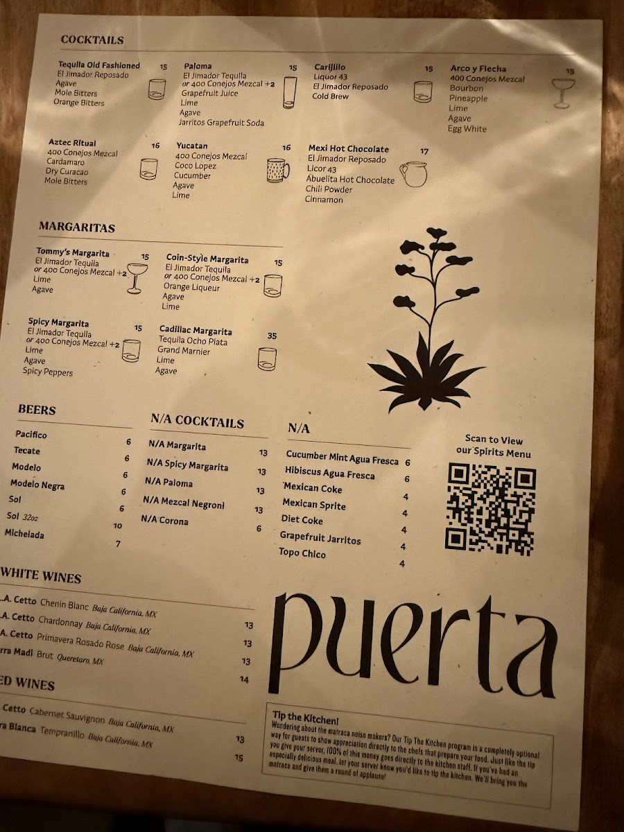Puerta’s menu offers a thoughtful selection of Mexican-inspired dishes and crafted cocktails designed for sharing and savoring in a lively yet comfortable setting. Whether you’re stopping by for vibrant small plates or evening cocktails, the menu balances familiar comfort with subtle twists that invite exploration.